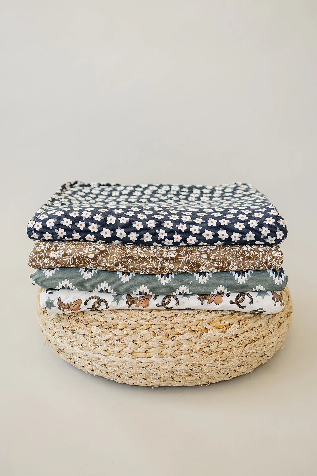 This fleece bamboo quilt is a must have! One side is crafted from soft, breathable bamboo material, while the other side boasts cozy fleece for ultimate warmth and comfort. Perfect for adding a touch of style and coziness to your baby's nursery.