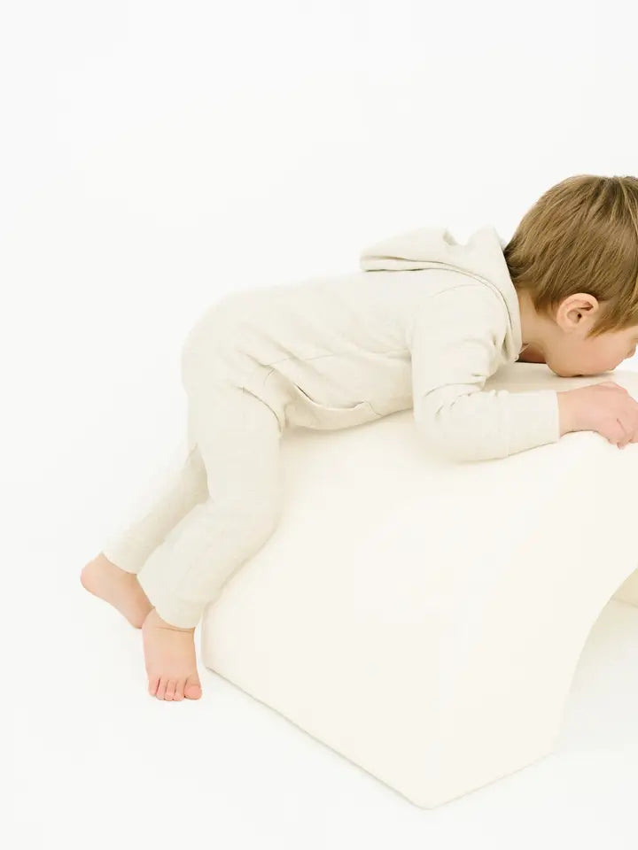 This comfy, all-in-one, hooded jumpsuit is perfect for playtime, lounging, or outings.